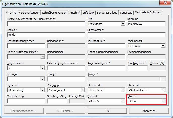 Der Status des Projekts darf nicht auf <Abgeschlossen> stehen.
