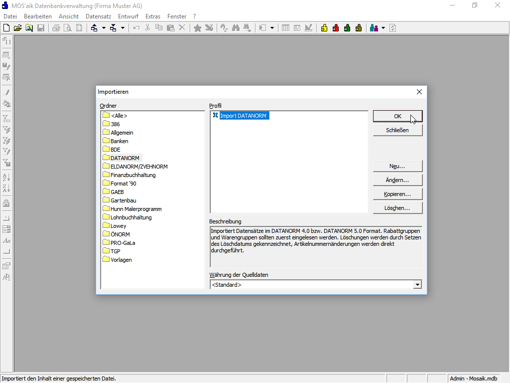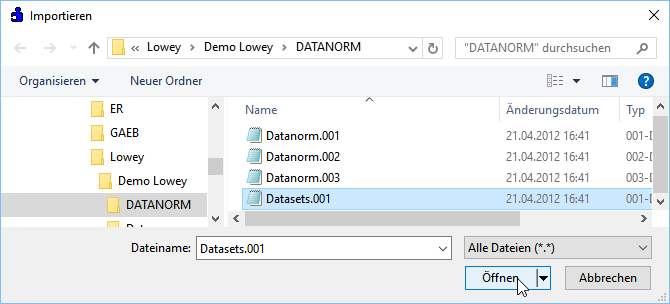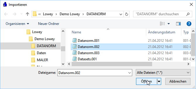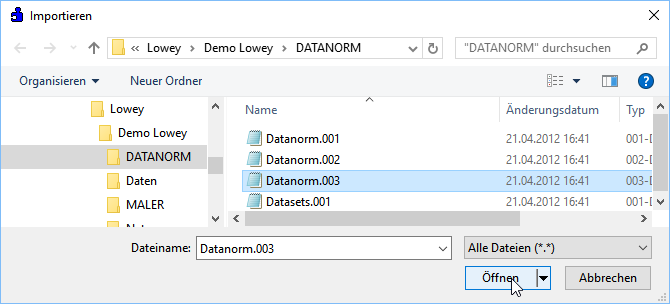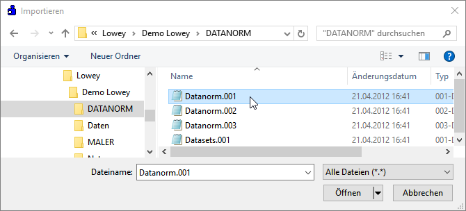 Wählen Sie die Datei Datanorm.001 und bestätigen