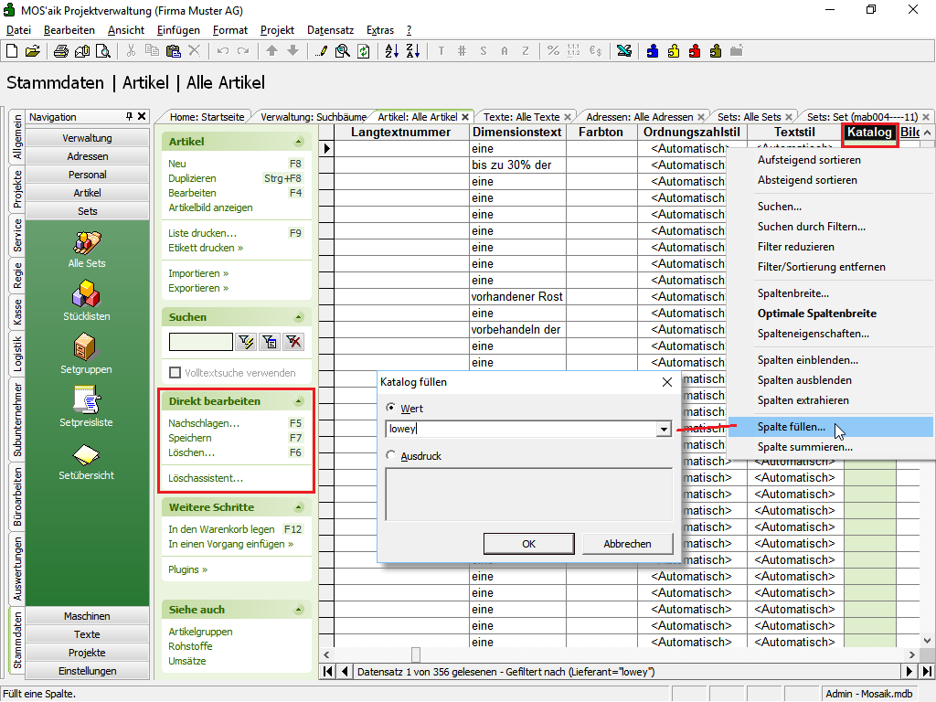 Der Katalogname für die Leistungen muss dazu ggf. zuvor in den