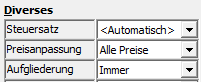 führt zu einer Rückrechnung des Preiszuschlags der Artikelgliederung.