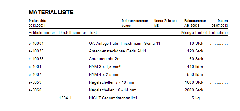 3.2. Auftrag mit Materialbedarfsliste