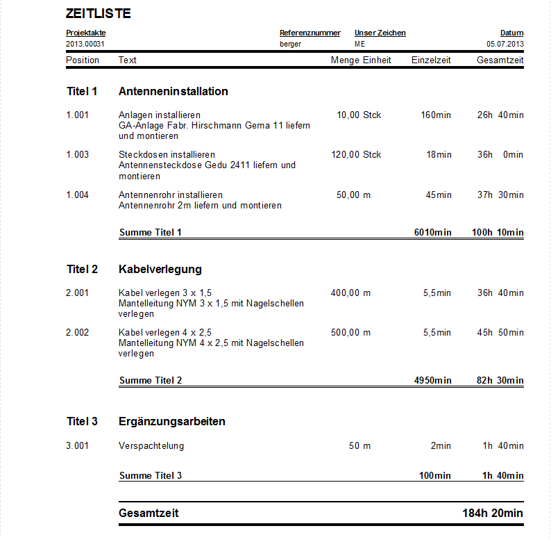 Sie können anhand des Auftrags z.B. folgende Listen erstellen: