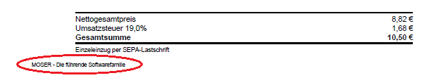 Im Fußtext können Sie beispielsweise Ihre Bankverbindung oder kurze Werbetexte festlegen, die beim Druck von Dokumenten ausgegeben werden. Abbildung 6.3. Beispiel: Fußtext/Werbetext