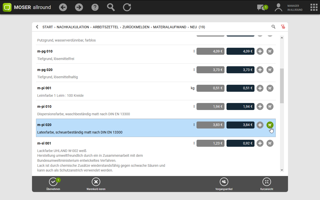 Im Rahmen der Nachkalkulation kann der beim Buchen Material auch die OZ der Gliederung aus dem Auftrag angegeben werden.