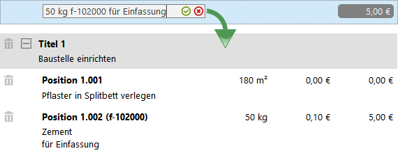 Über die Schnellerfassung wird in Lieferantenvorgängen (z.B. Bestellung) für Gliederungstexte keine Gliederung, sondern nur der entsprechende Text eingefügt.