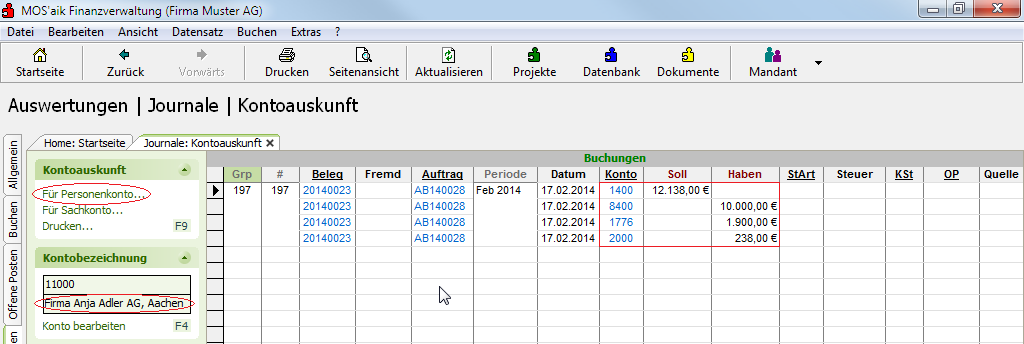 Nur die Konten der Sachkontentypen Ertragskonto, Erlöskonto, Aufwandskonto oder Wareneingangskonto/Bestandskonto werden in die Projektnachkalkulation einbezogen. Bei der Buchung von Eingangsrechnungen kann z.B. eine Projektreferenz als