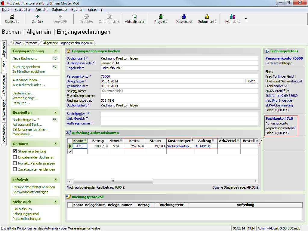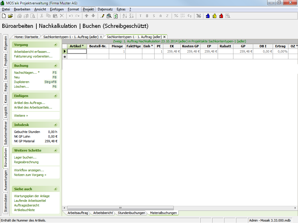 Kostenträgerangegeben werden:Abbildung 1.8. Der Nettobetrag wird zur Nachkalkulation auf das Projekt gebucht: