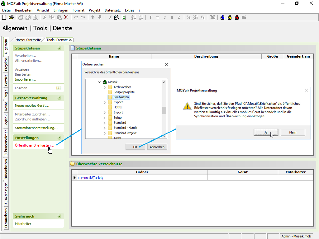 C:\Mosaikder MOS'aik-Datenbank einen neuen Ordner mit dem NamenBriefkastenan. -