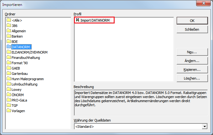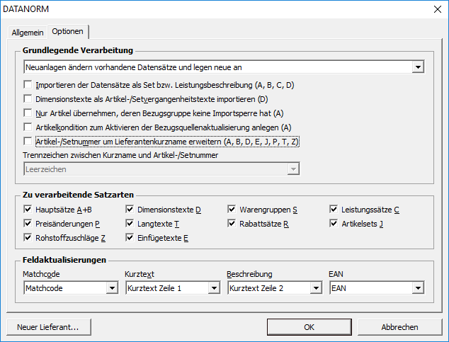 Löschdatumund derAusgeblendet-Schalter zurückgesetzt, wenn der Datensatz in der DATANORM-Datei nicht als gelöscht markiert ist. -
