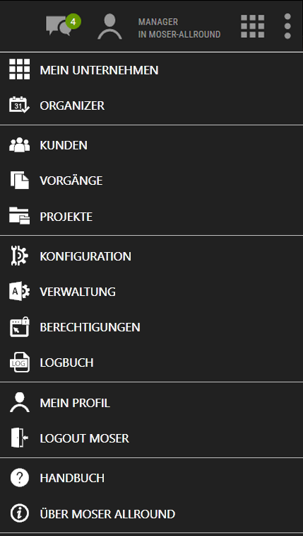 Nach erfolgter Anmeldung findet der Benutzer auf der Startseite sämtliche Arbeitsbereiche,