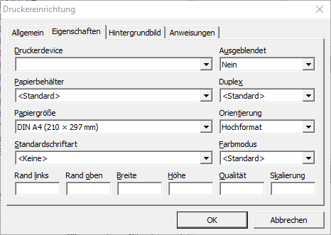 Mit Rand Links und Rand oben können Sie sämtliche Druckausgaben horizontal und vertikal verschieben. So können Sie leicht kleine Änderungen in der Papierführung bei (Endlos-) Druckern korrigieren. In der Seitenansicht wirken die Randangaben nicht. |