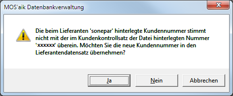 Ggf. erfolgt nun noch eine Rückfrage, falls Daten aus der Preisdatei des Lieferanten von Ihrer erfassten Lieferantenadresse abweichen: