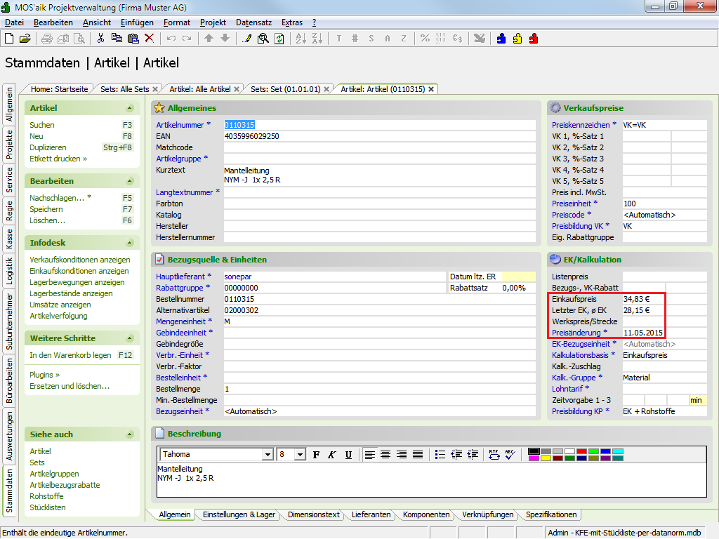 Aktualisierte Artikelpreise finden Sie im jeweiligen Artikelstammdatenblatt Artikel: