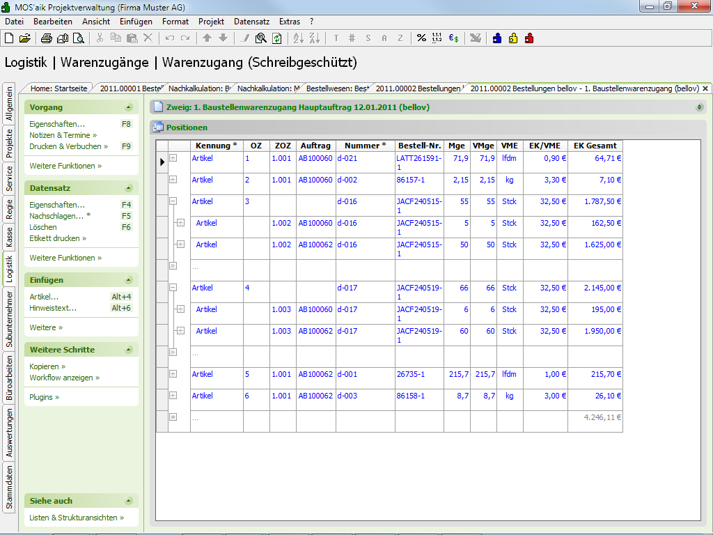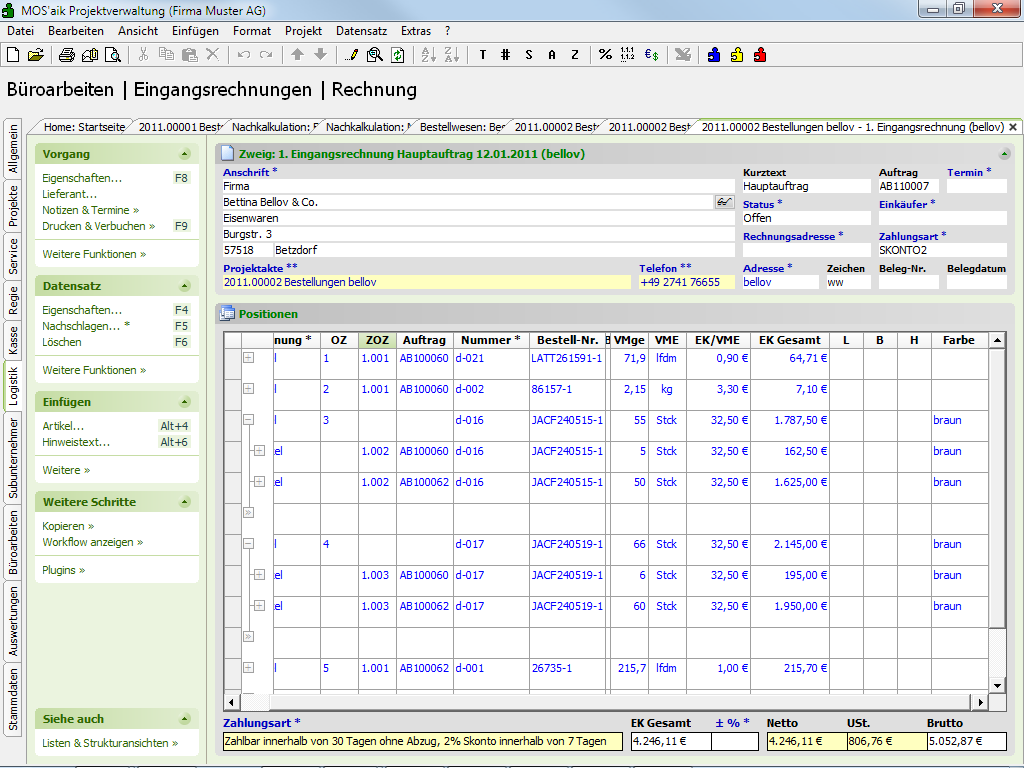 6.10.3. Eingangsrechnungen für Warenzugänge erstellen (MOS'aik-Projektverwaltung)