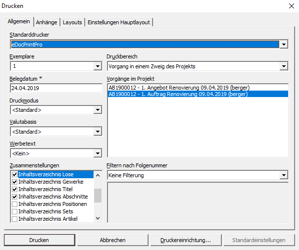 6.12.1. Vorgangsausdrucke als E-Mail versenden