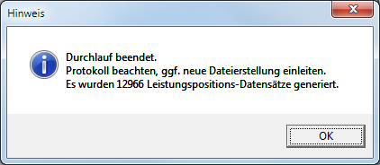 Abschluss der Verarbeitung wird eine Meldung angezeigt.