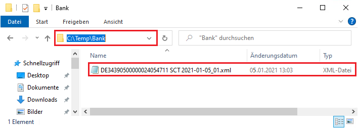 Bereits vorhandene Bankdateien zu diesem Ausführungsdatum werden nicht überschrieben, sondern werden aufsteigend nummeriert (letzte Zahl im Dateinamen).