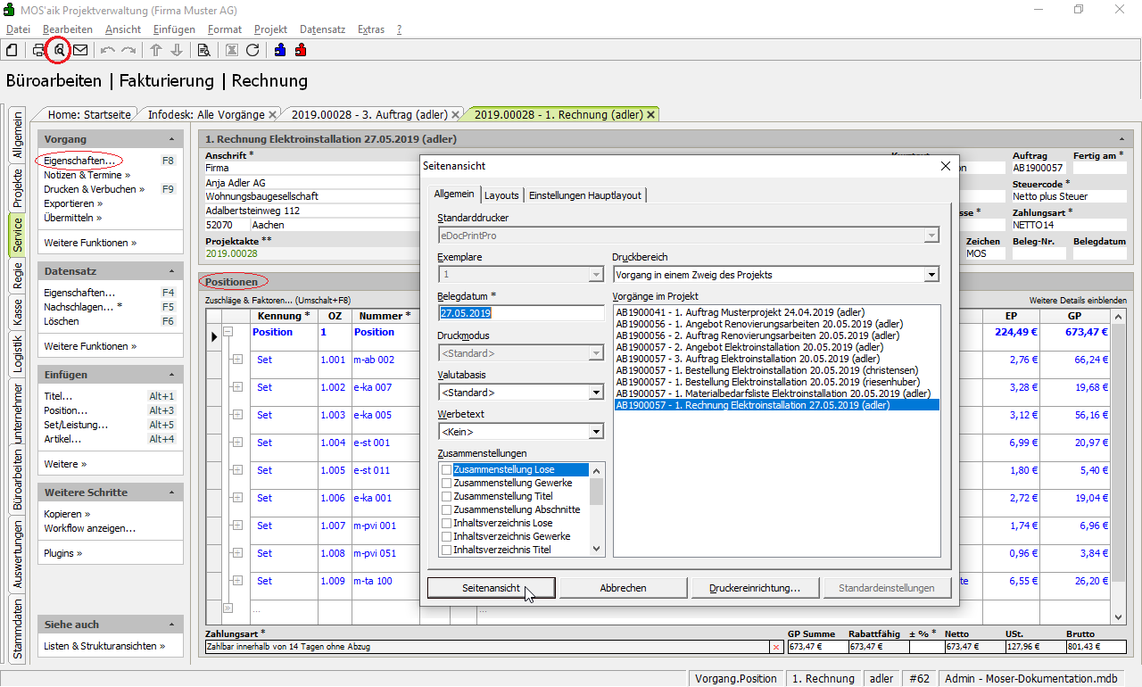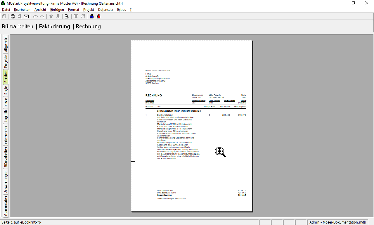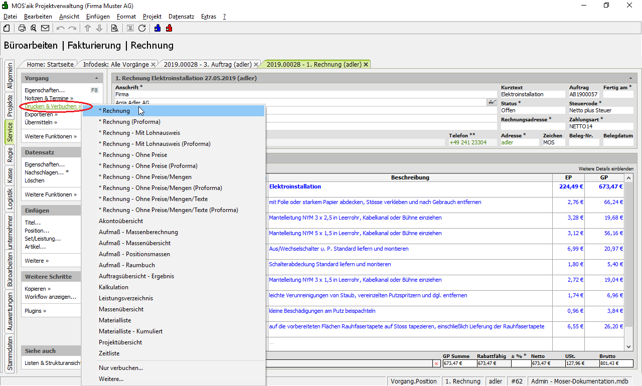 Der Rechnungsausdruck kann jetzt dem Kunden zugestellt werden.