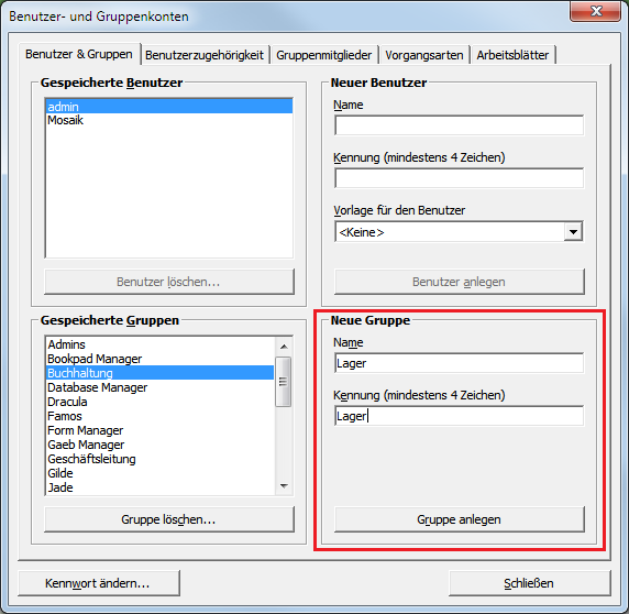 Wählen Sie nun die Gruppe Buchhaltung aus und
