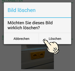 Tippen Sie auf das Bild und halten Sie den Finger gedrückt, bis der folgende Dialog erscheint. Wählen Sie dann Löschen: