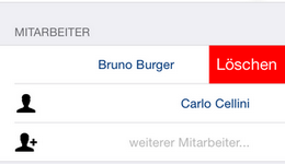 Schieben Sie den Mitarbeiter mit einem Finger nach links und tippen Sie auf die erscheinende Schaltfläche Löschen: