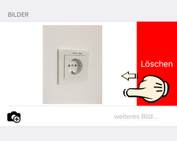 Schieben Sie das Bild einfach mit einem Finger nach links und tippen Sie auf die erscheinende Schaltfläche Löschen: