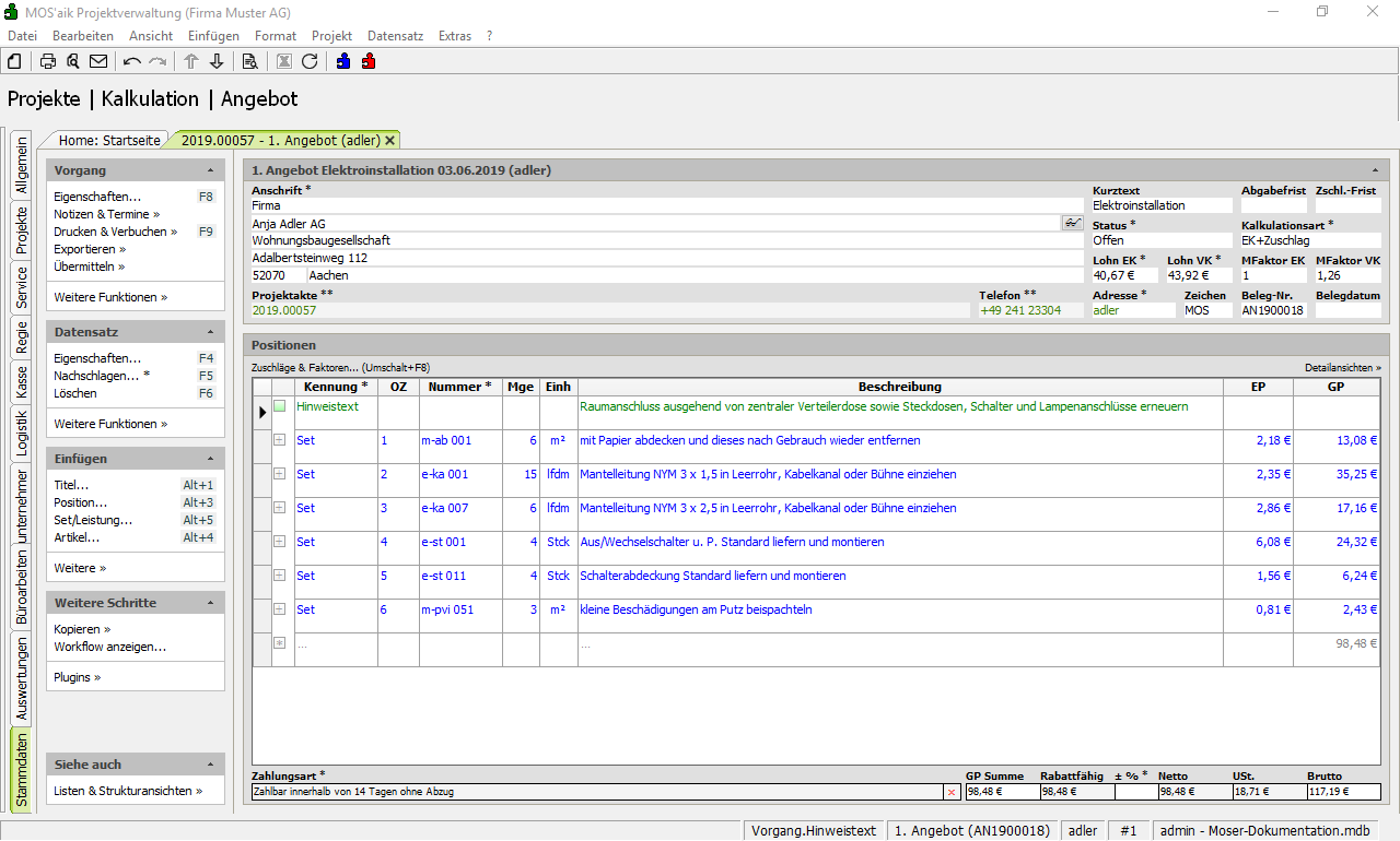 einem Kundenvorgang (z.B. Angebot, Auftrag, Arbeitszettel, ...) einen