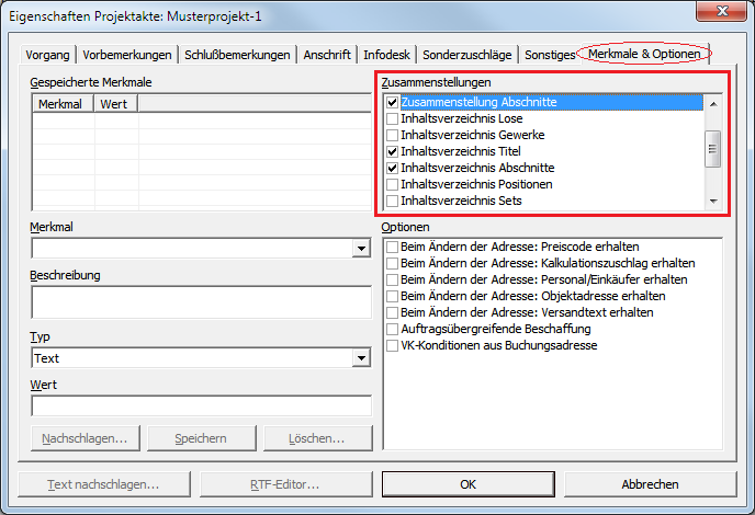 Siehe dazu auch Abschnitt Abschnitt 6.7.7, „Registerkarte "Merkmale & Optionen"“. -