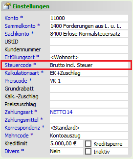 Wenn in den Artikelstammdaten ein Bruttopreis vorhanden ist, werden folgende Voreinstellungen beim Steuercode Brutto incl. Steuer nicht mehr berücksichtigt: