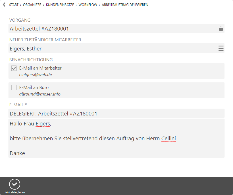 Arbeitsauftrag delegieren