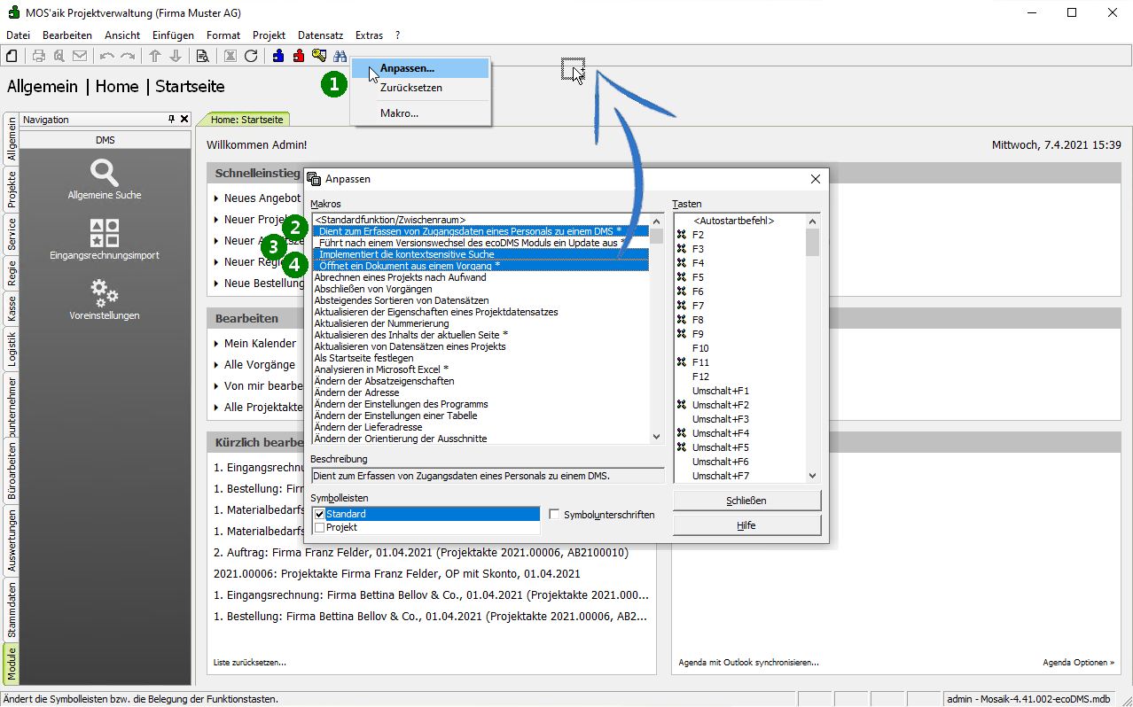 Klicken Sie in der MOS'aik-Projektverwaltung