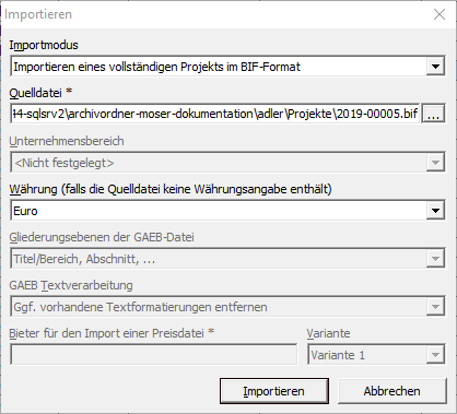bif-Datei bewirkt die NEUANLAGE eines Projekts mit den