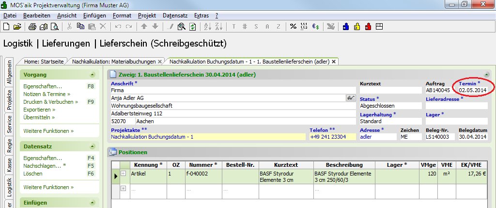Enthält der Vorgang kein Lieferdatum, wird das