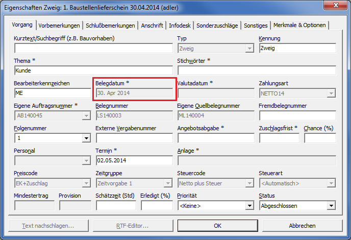Belegdatumdes Vorgangs verwendet:Abbildung 4.62.
