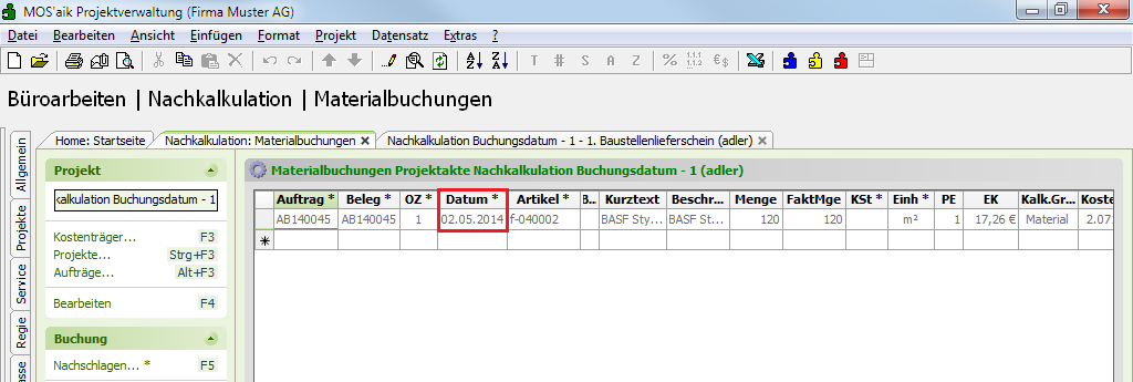 Bei der Buchung der Materialnachkalkulation wird als