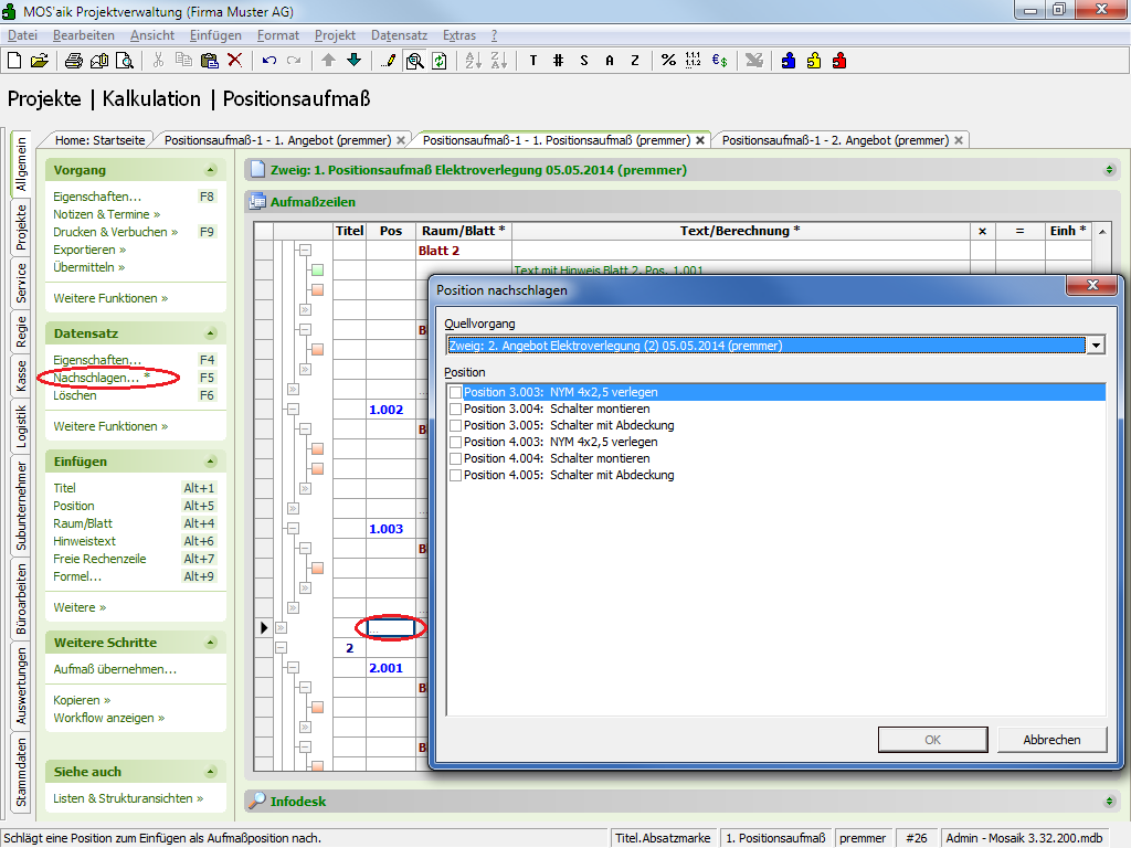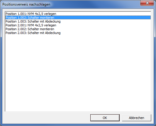 NachschlagenF5 haben Sie außerdem die Möglichkeit Bezüge zu anderen Aufmaßpositionen herzustellen, indem Sie die betreffende Position auswählen:Abbildung 2.37. Nachschlagen von Positionsreferenzen