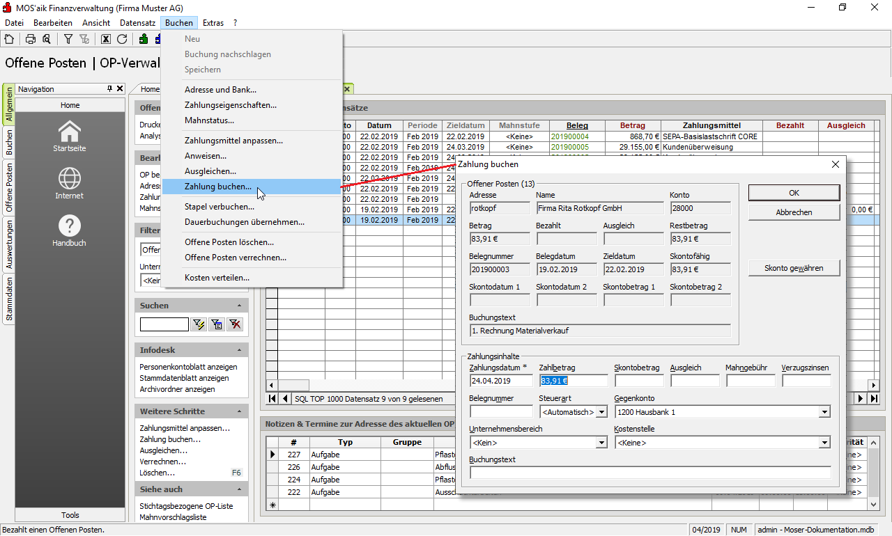 6.9.7. Zahlungen in der OP-Verwaltung buchen