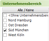 Zur Selektion werden hier die im MOS'aik hinterlegten Unternehmensbereiche angezeigt. Wahlweise kann auch ohne Unternehmensbereiche gearbeitet werden.