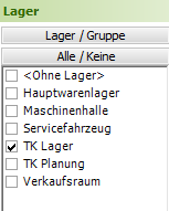Zur Selektion der Maschinen kann das Lager oder die Gruppe der Maschinen-Stammdaten verwendet werden. Die Überschrift wird automatisch angepasst.