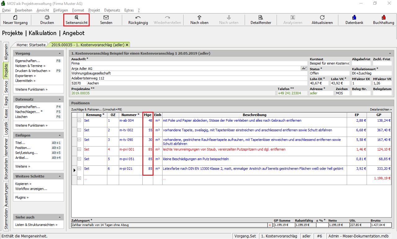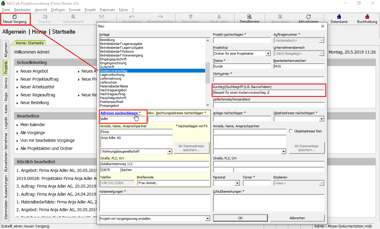 Sie erstellen einen Kostenvoranschlag z.B. über das Menü Datei > Neu Strg+N oder das Symbol