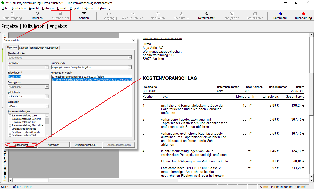 4.1.2. Kostenvoranschlag erstellen