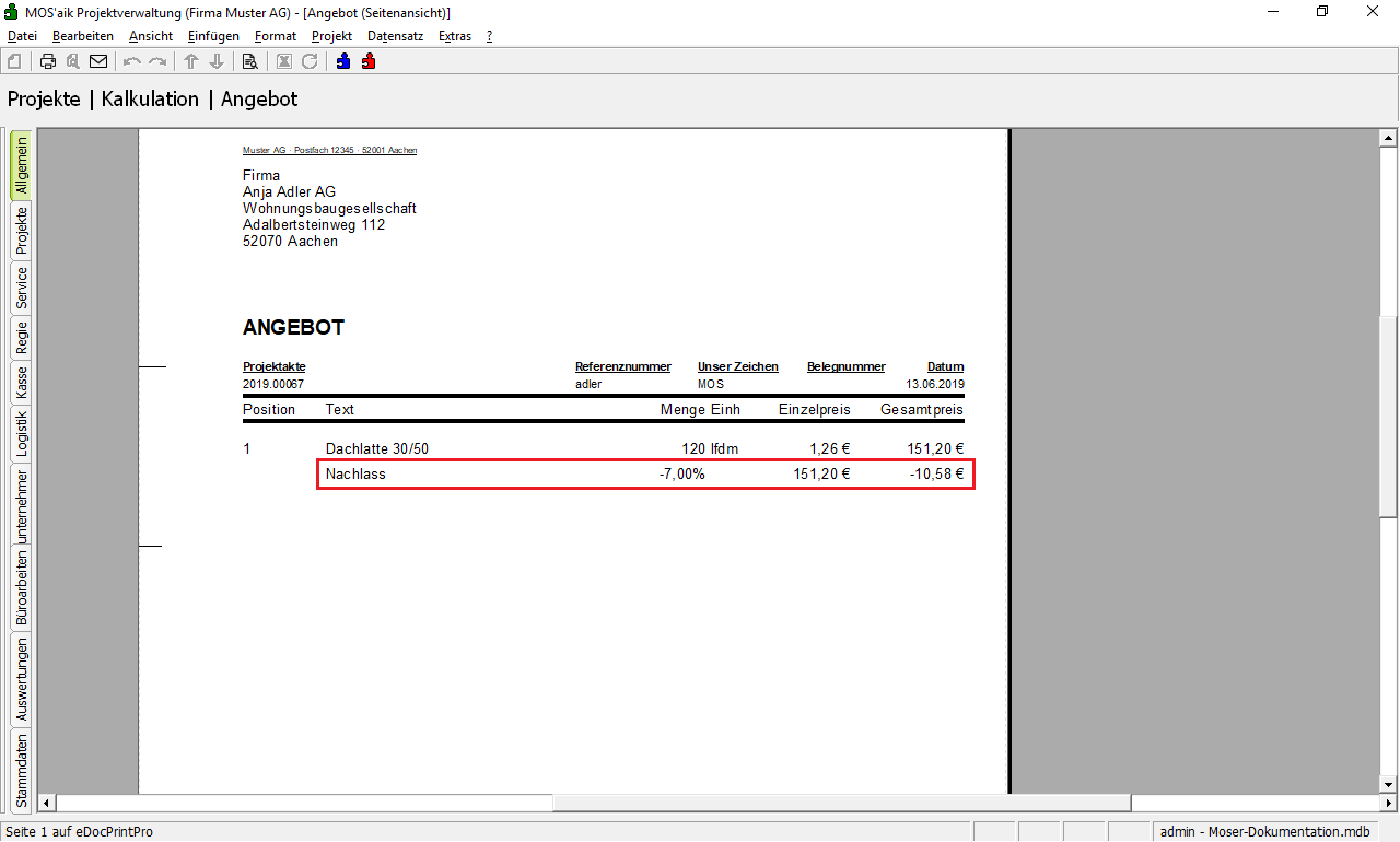 Die Preisanpassungen aus dem vorhergehenden Schritt werden beim Druck offen ausgewiesen.
