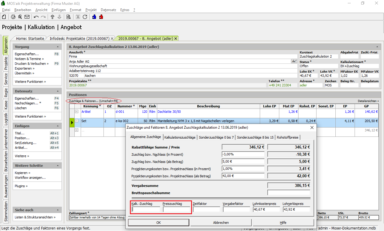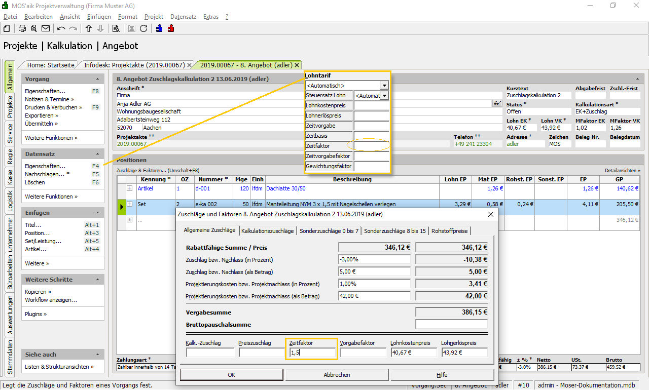 bzw. über den Link Zuschläge & Faktoren ... (Umschalt+F8) ein. Im