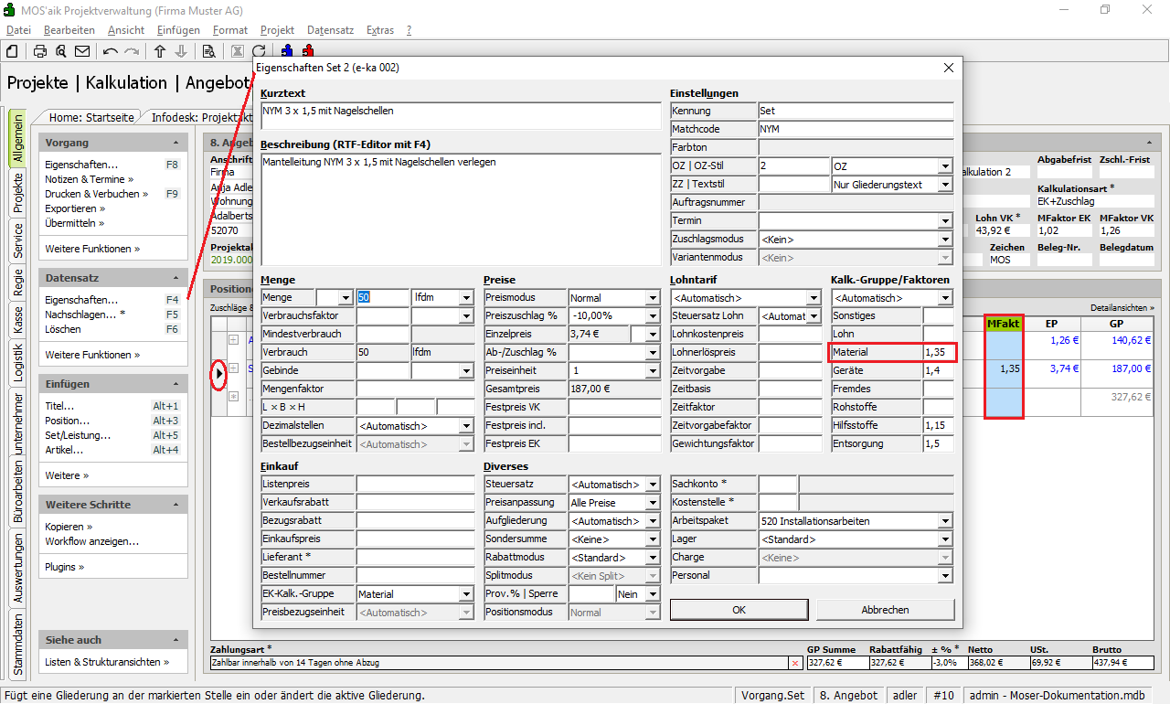 MFaktor VKwird der Materialfaktor VK für den gesamten Vorgang festgelegt und wird verwendet, wenn eine Position keinen Wert in der SpalteMFaktbesitzt.