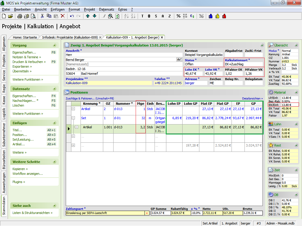 Kalk.-Zuschlag + PZ + Zuschlag Lohn