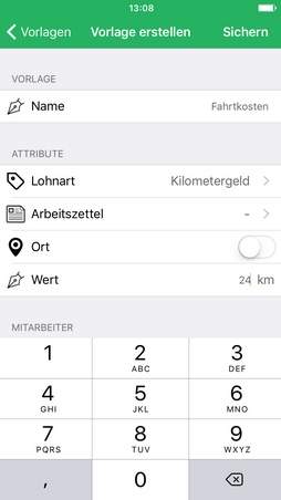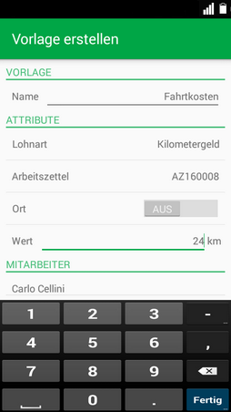 Beschreibung iOS Android Dazu vergibt man der neuen Vorlage einen Namen (z.B. Fahrkosten) und füllt im Vorfeld bereits bekannte Informationen ein, z.B.: