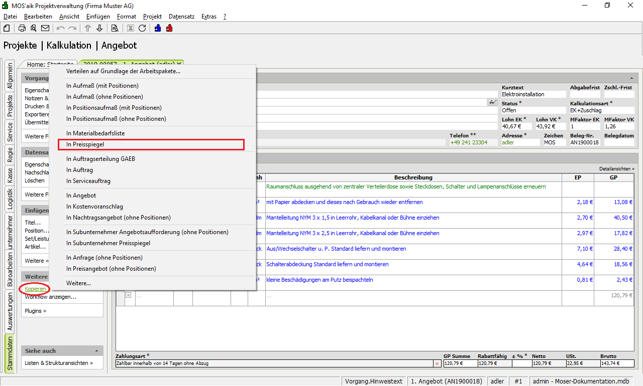 Preisangebote in den Preisspiegel zu übernehmen, rufen Sie die Funktion