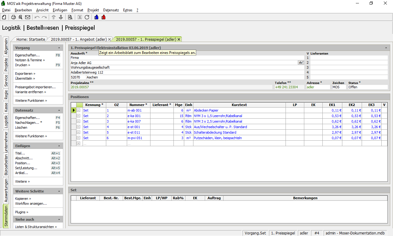 Verfahren Sie entsprechend für weitere Lieferantenangebote (z.B.