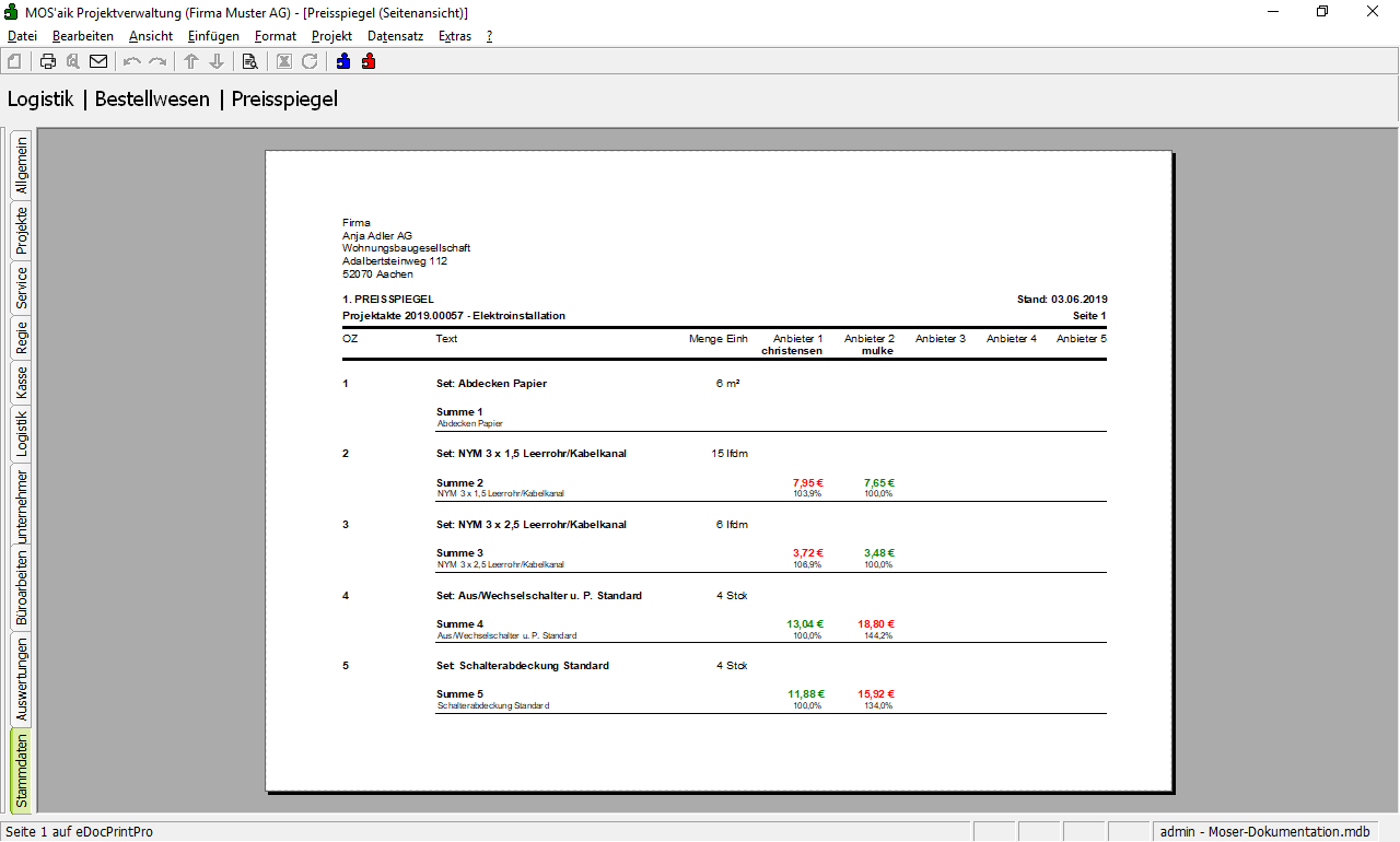 einen Preisspiegel erstellen, um einfach entscheiden zu können, welches Angebot