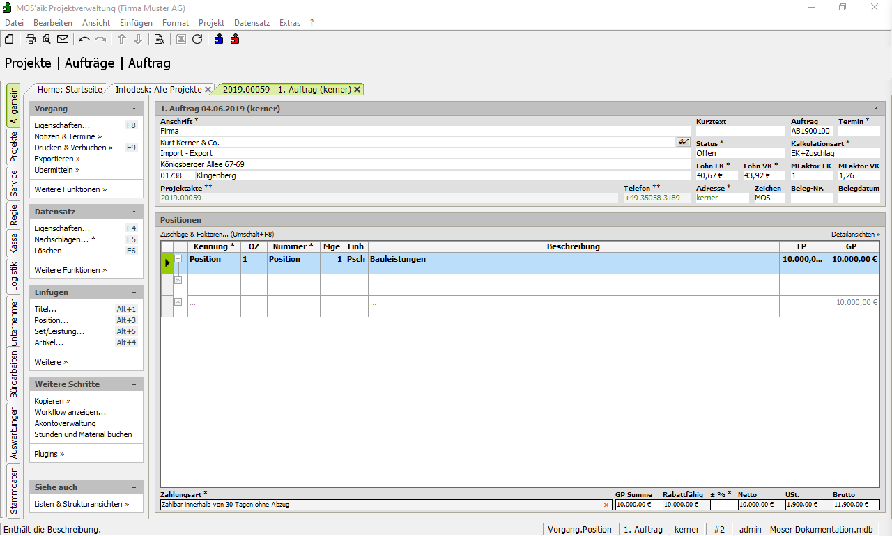 wird ein Auftrag erstellt.